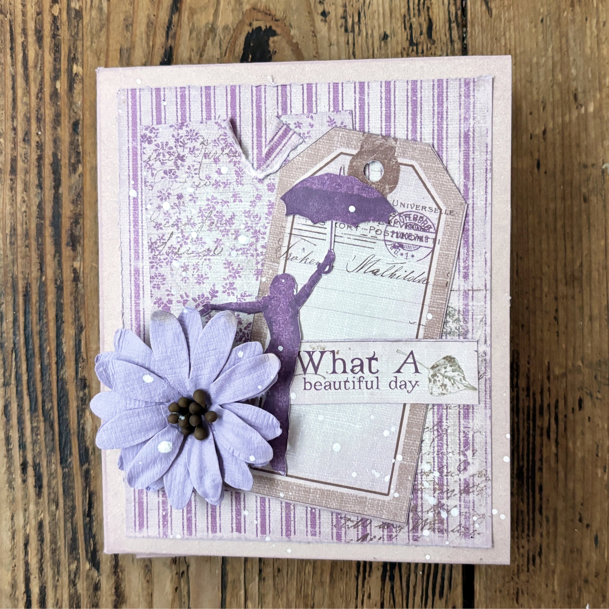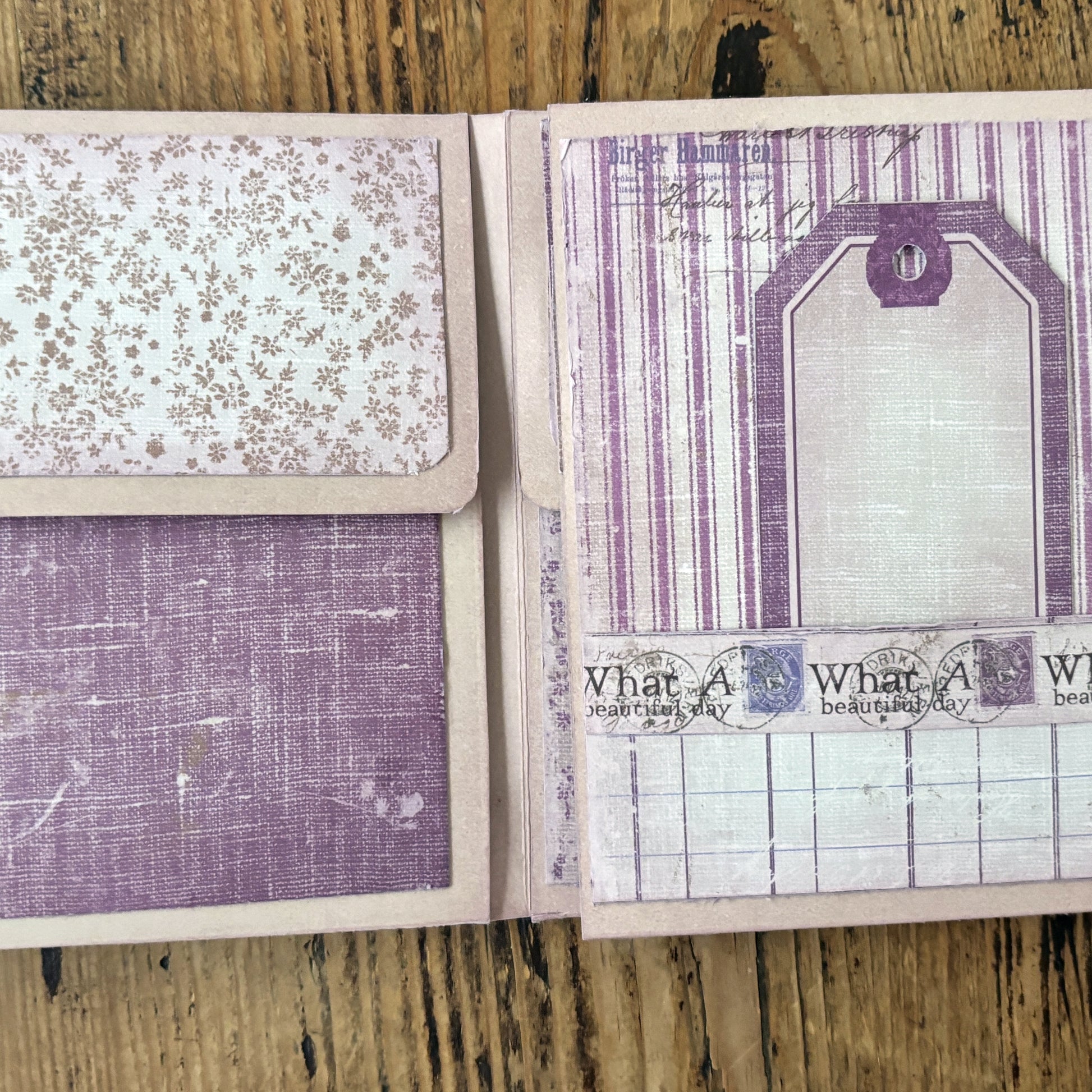 What a lovely day! This lavender colored folio is a nice gift for yourself or any of your friends that is a garden enthusiast. Great to give as a gift or send in a swap or snail mail. Made with quality paper by Maja Designs and Pion.
