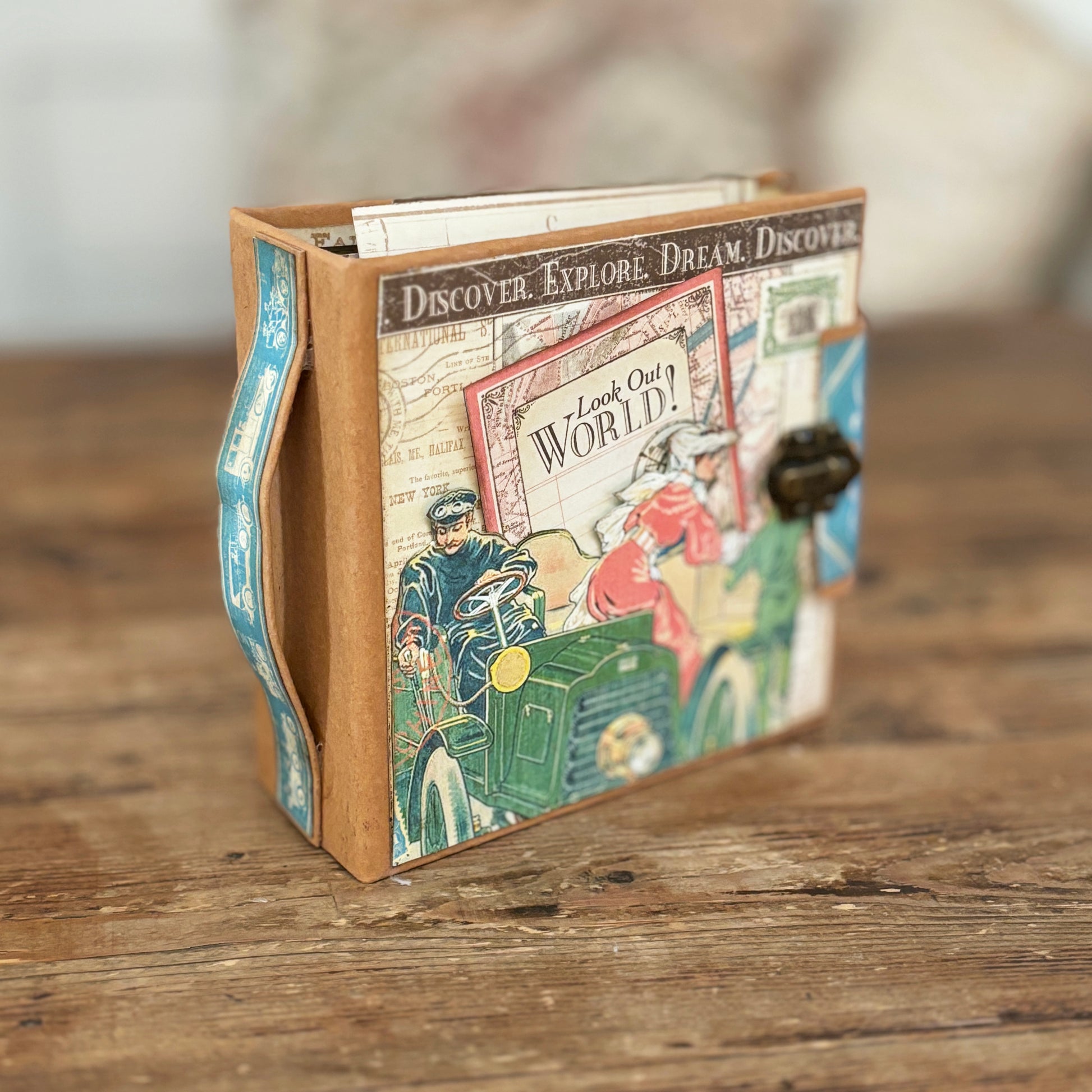 The perfect gift for the globetrotter, a mini album with enough space for photos and travel notes! Made with beautiful quality paper from Graphic45.