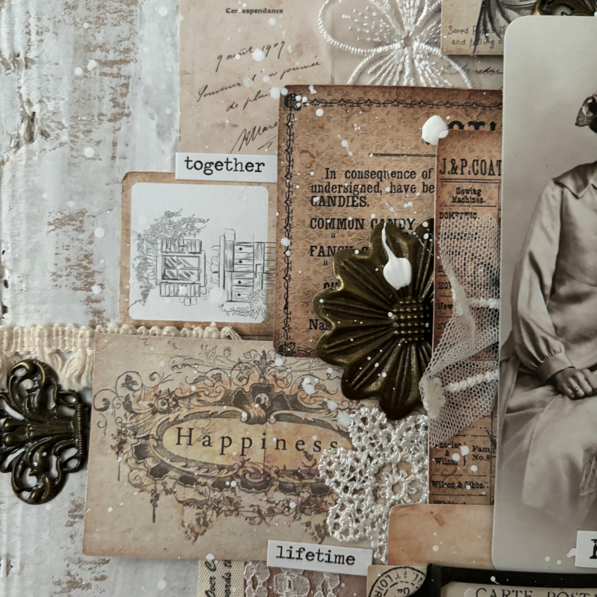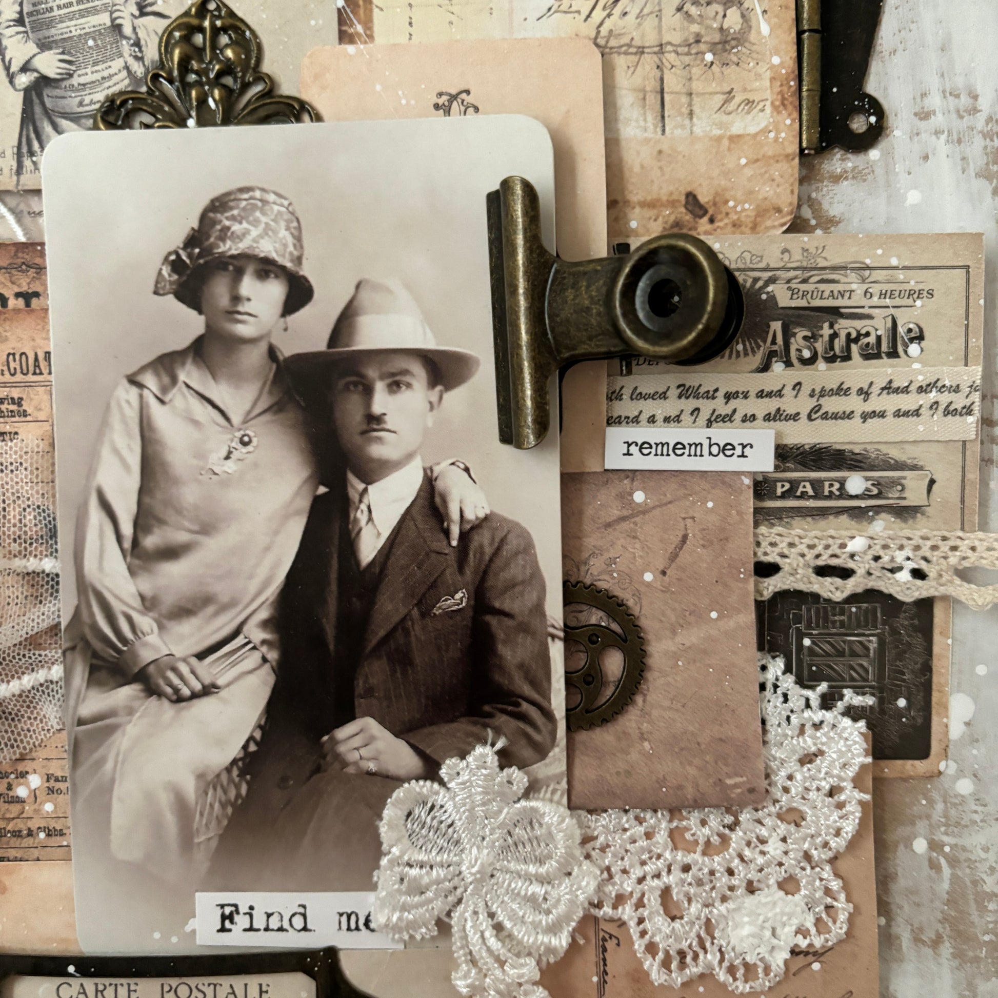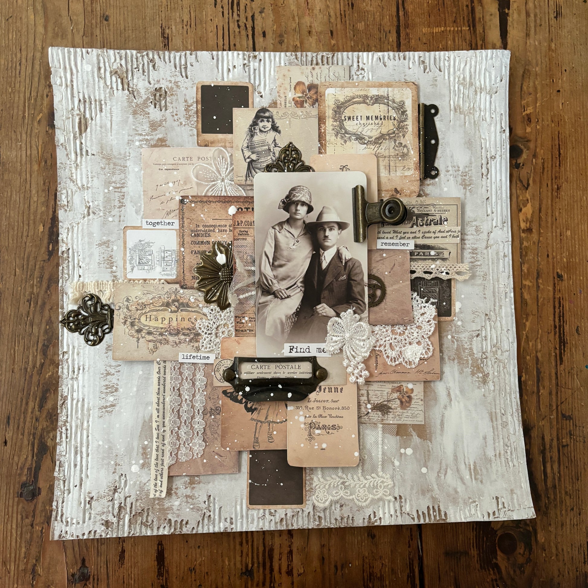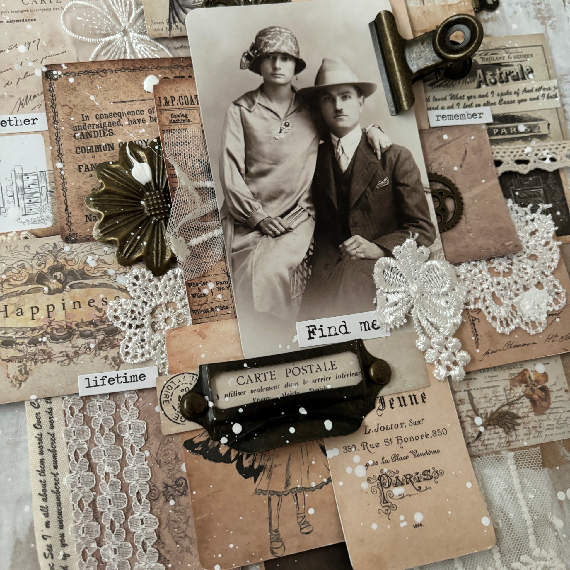 A lovely vintage collage, featuring a loving couple from the past. Ready to frame. Will ship secured. With lace, bronze and paint details. Check out the making of this collage on my Youtube channel here: