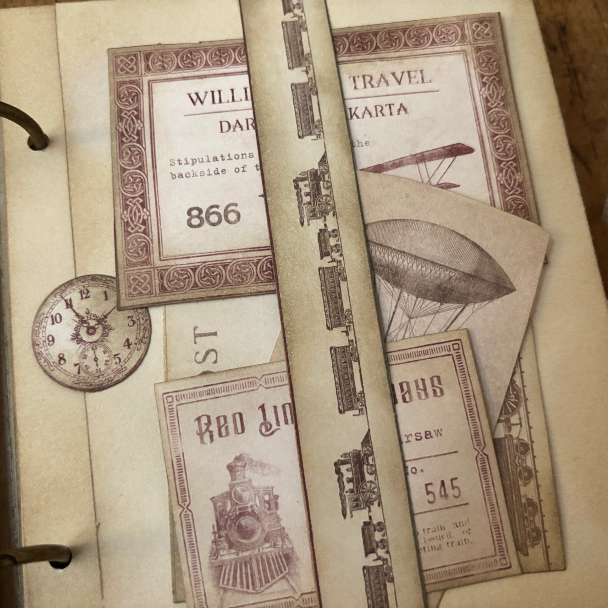The album closes with a soft cotton ribbon, which has a brass charm of an airplane attached to it.
