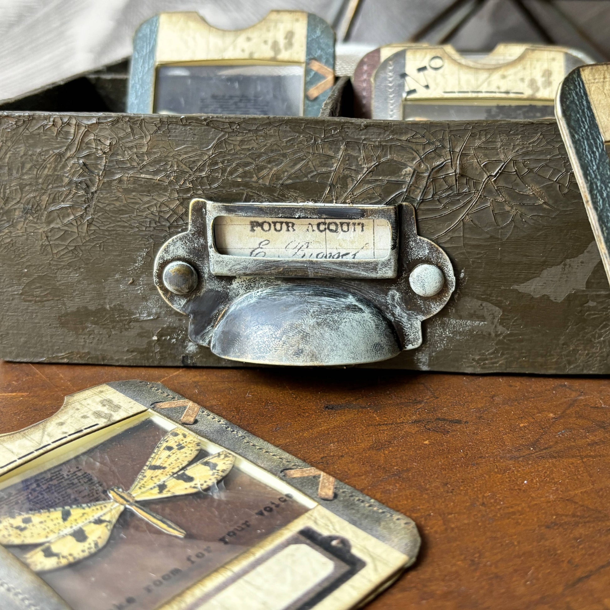 A sturdy box, handmade & distressed to make it look like it has been on a botanist' shelf for a very, very long time. Comes with 8 handmade butterfly specimen cards & a beautiful magnifying glass. Perfect as a gift for any nature lover. See more details about this item on my Youtube channel here: