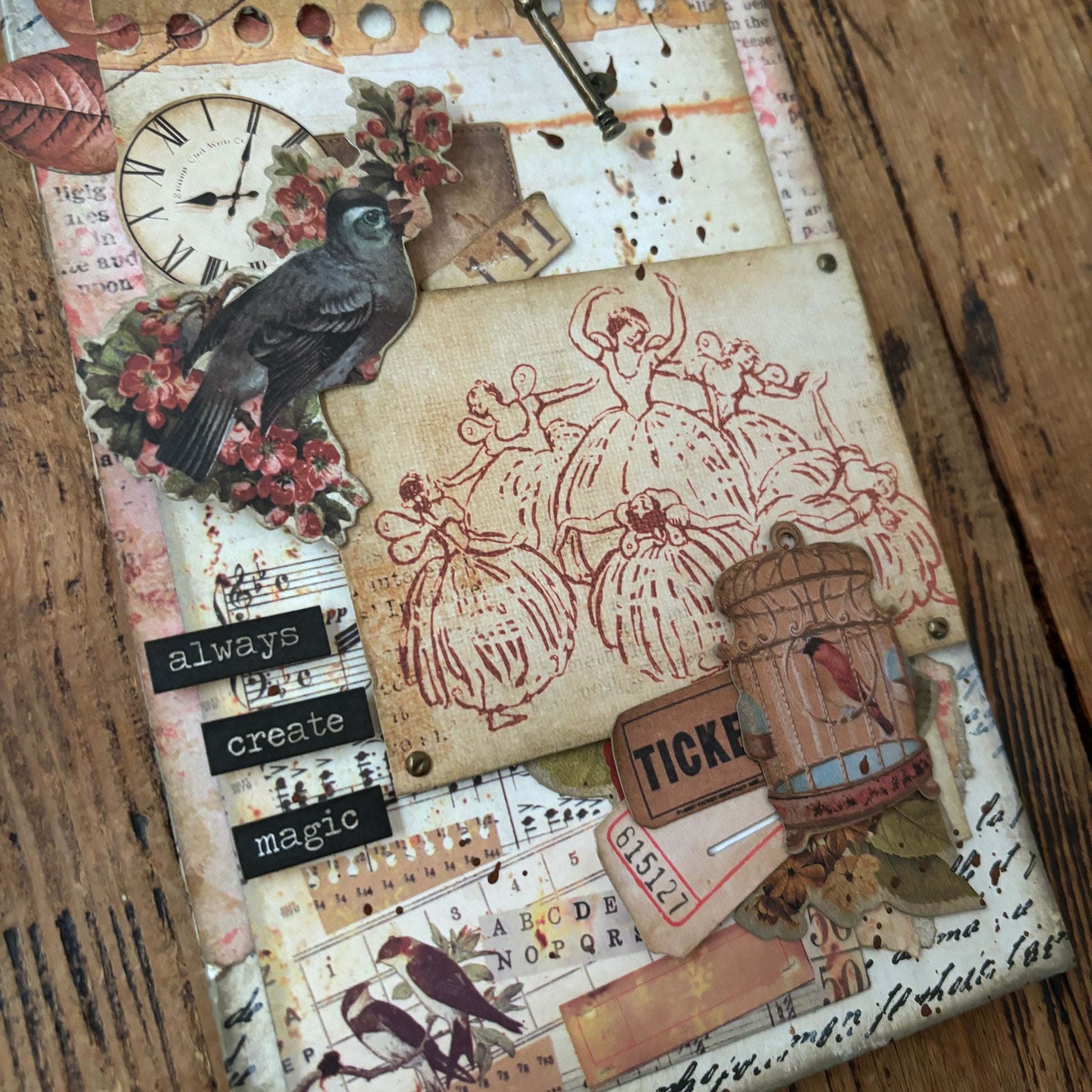 A beautiful tag created with top quality Prima Marketing paper from the Vintage Emporium line. It features ballerina's, a bird, flowers and layers of gorgeous vintage paper.