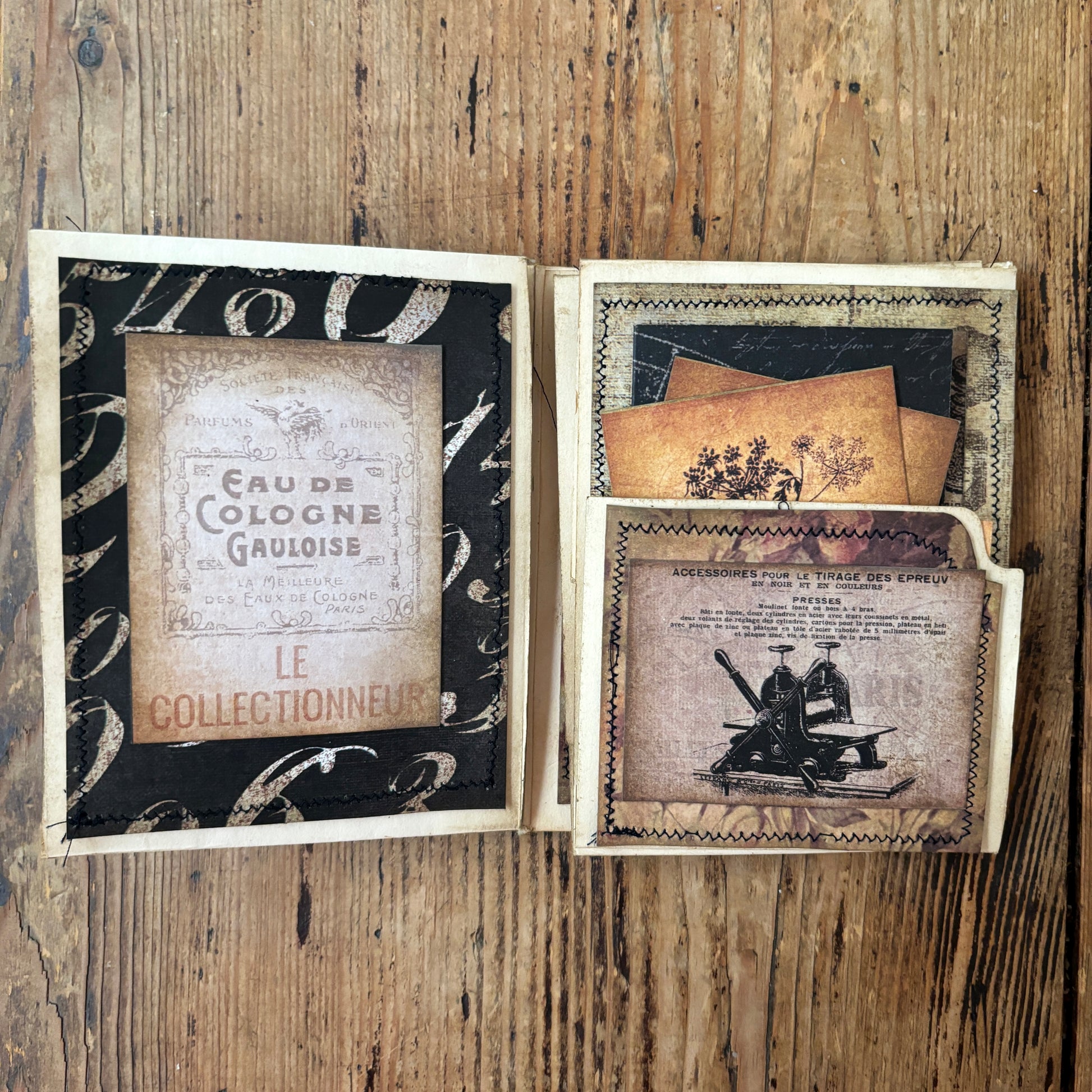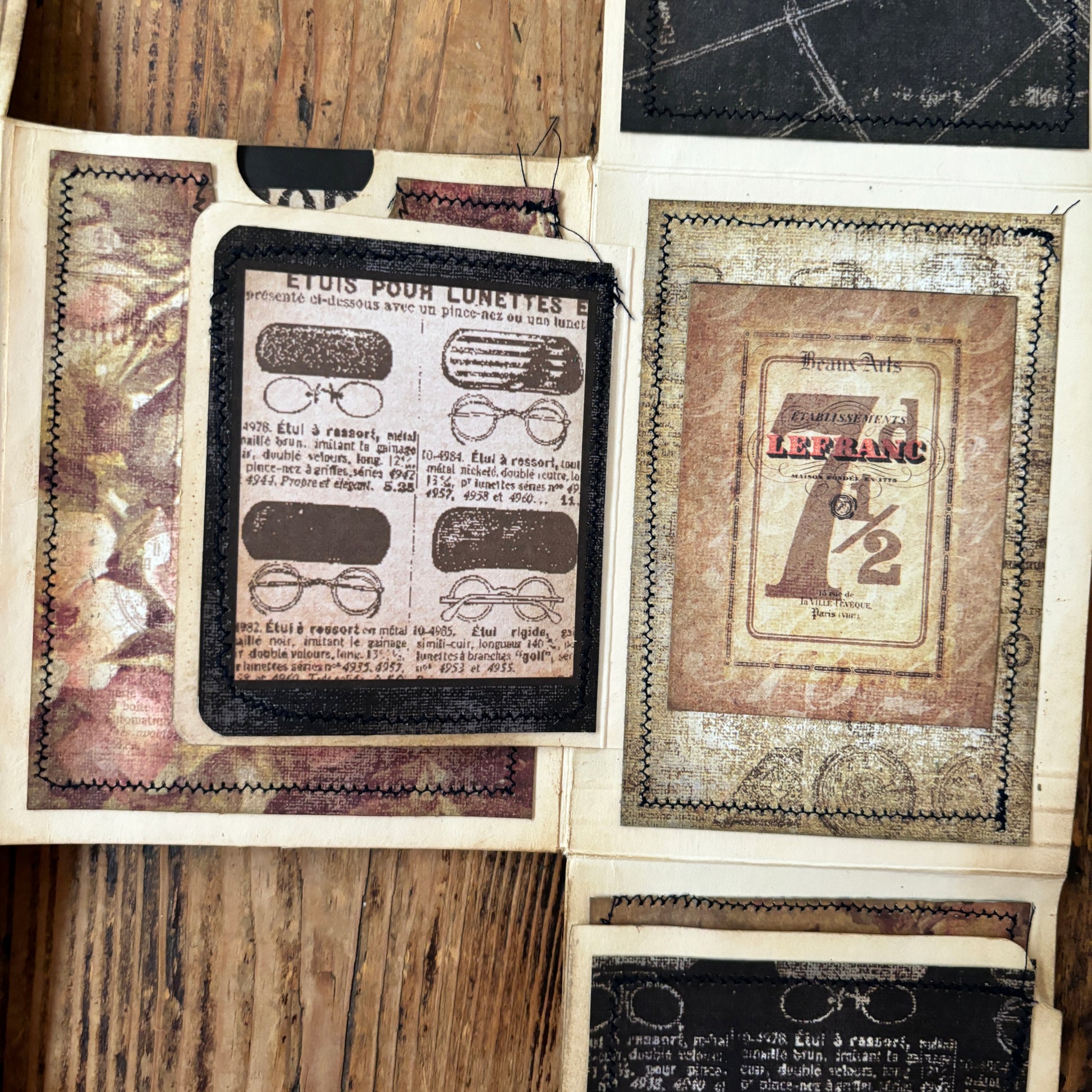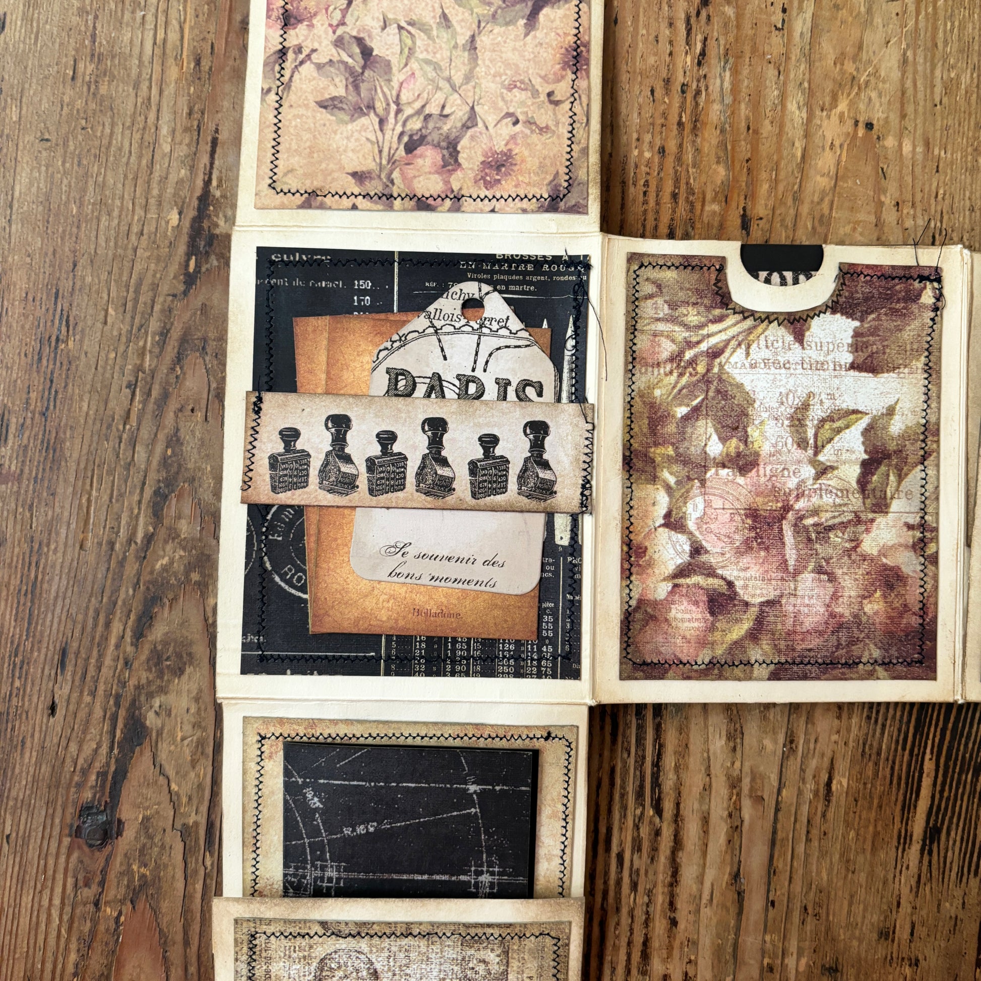 A beautiful handmade folio, filled with vintage images from the past. Made with quality Prima Marketing paper, the Frank Garcia - The Archivist collection. The pages have all been stitched to give a vintage feel. The front is adorned with a butterfly dome and pretty flowers. Comes with a black ribbon to keep it closed.